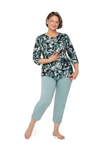 Foggia női pizsama hosszú ujjú, hosszú nadrág olasz divat - zöld/print