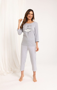 716 Női pizsama Regina szürke - pamut, 3/4 ujjú, 7/8 mintás nadrág