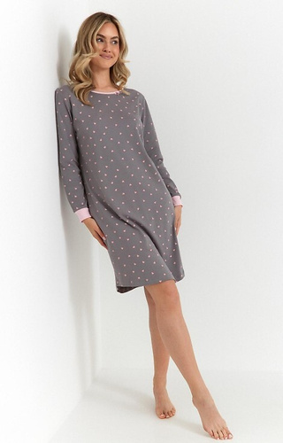 493 Női hálóing Cana grafit - interlock pamut, szív, hosszú ujjú, hosszú ujjú