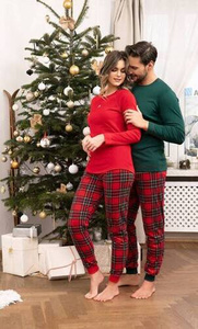 Tess női pizsama hosszú ujjú és hosszú nadrág olasz divat - piros/print
