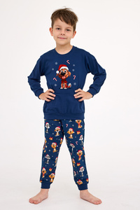 593/173 966/173 Kutya Fiú pizsama Cornette - karácsonyi, sötétkék, pamut, pamut