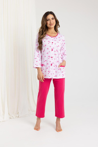 705 Női pizsama Regina rózsaszín - pamut, hosszú ujjú, hosszú nadrágos