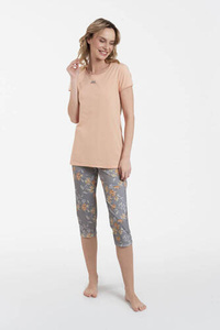 Ramira Női pizsama rövid ujjú és 3/4-es nadrág olasz divat - print/cappucino