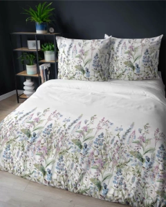 5496 A Pamut ágynemű fehér, akvarell kék virágokkal Naturalis- Detexpol