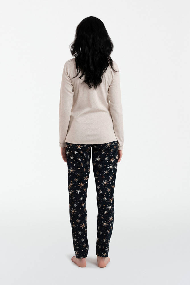 Denali női pizsama hosszú ujjú, hosszú nadrág olasz divat - bézs melange/print