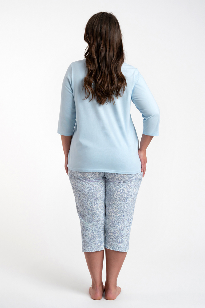 Salli Női pizsama 3/4 ujjú és 3/4 nadrág olasz divat -kék/print