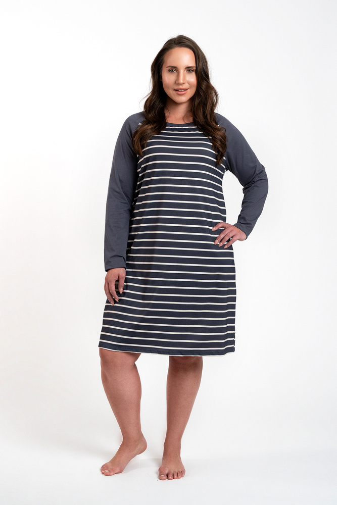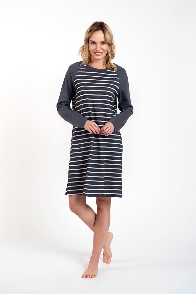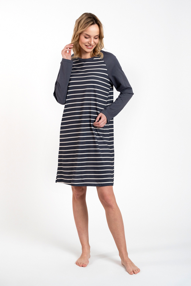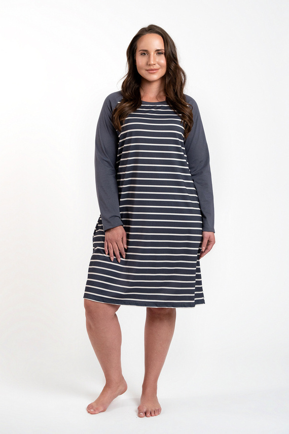 A női pamut hálóing garantálja a kényelmet és a szabadságot, amelyet minden nő akar és megérdemel! A könnyű, laza szabású hálóing és a biztonságos és bőrbarát anyag biztosítja a kényelmet a hideg és meleg éjszakákon egyaránt. A hosszú ujjú és a térdig érő hosszúság miatt a hálóing tökéletes otthoni és idegenbeli használatra, az időtlen csíkos minta pedig minden nőnek megfelel. A 100% pamut hálóing két színben - grafit és kapucsínó - és S-től XXL méretben kapható.