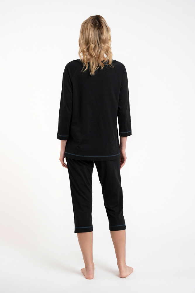 Olza Női pizsama 3/4 ujjú, 3/4 nadrágos olasz divat - fekete