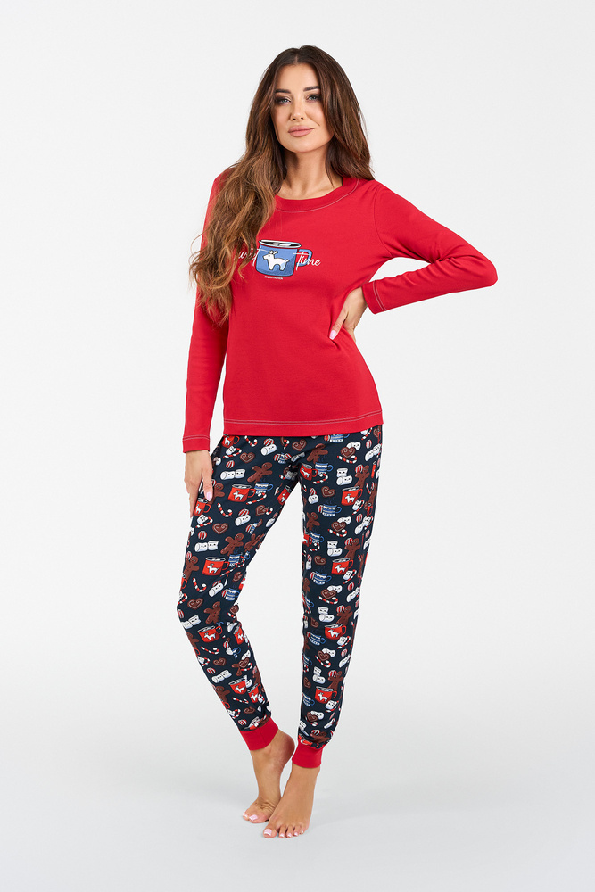 Makala Női hosszú ujjú pizsama és hosszú nadrág Italian Fashion - piros/print