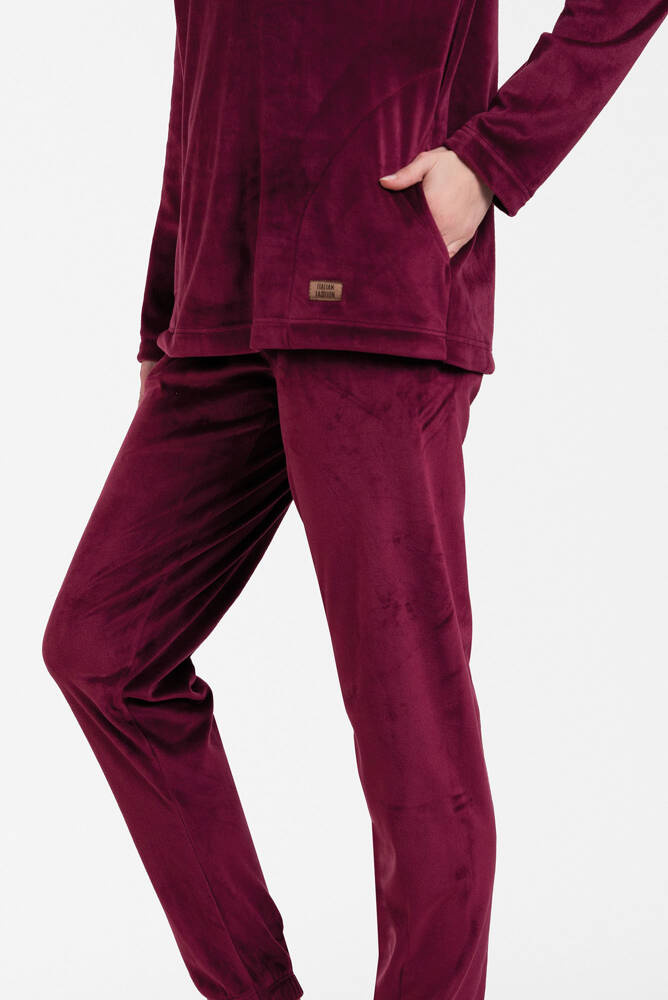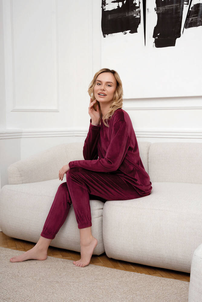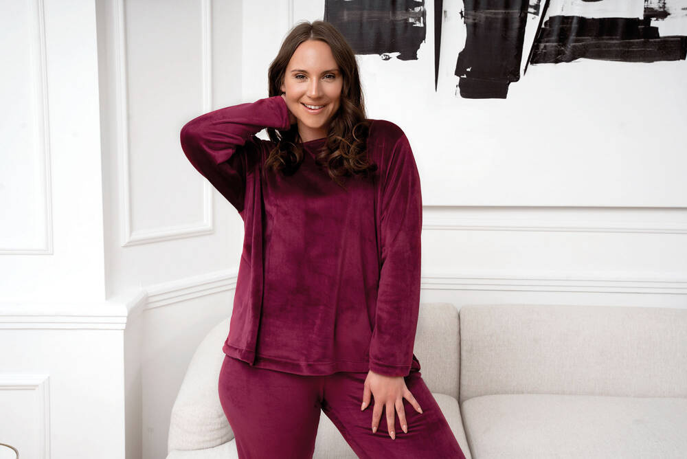 Elegáns, mégis sportos. Nagyon kényelmes és meleg női puha gyapjú szett, amely tökéletes a téli napokra és estékre. Meleg pizsamaként vagy feltűnő, divatos tréningruhaként kezelhető. A női fleece pulóver és nadrág szett szabadságot és kényelmet biztosít, miközben nagyon érdekesnek tűnik. A nadrág bordázott szegéllyel van ellátva, míg a kerek nyakú pulóver funkcionális zsebekkel rendelkezik. A divatos női gyapjúszett S-től XXL méretben kapható két színben - bordó és púderrózsaszínben.