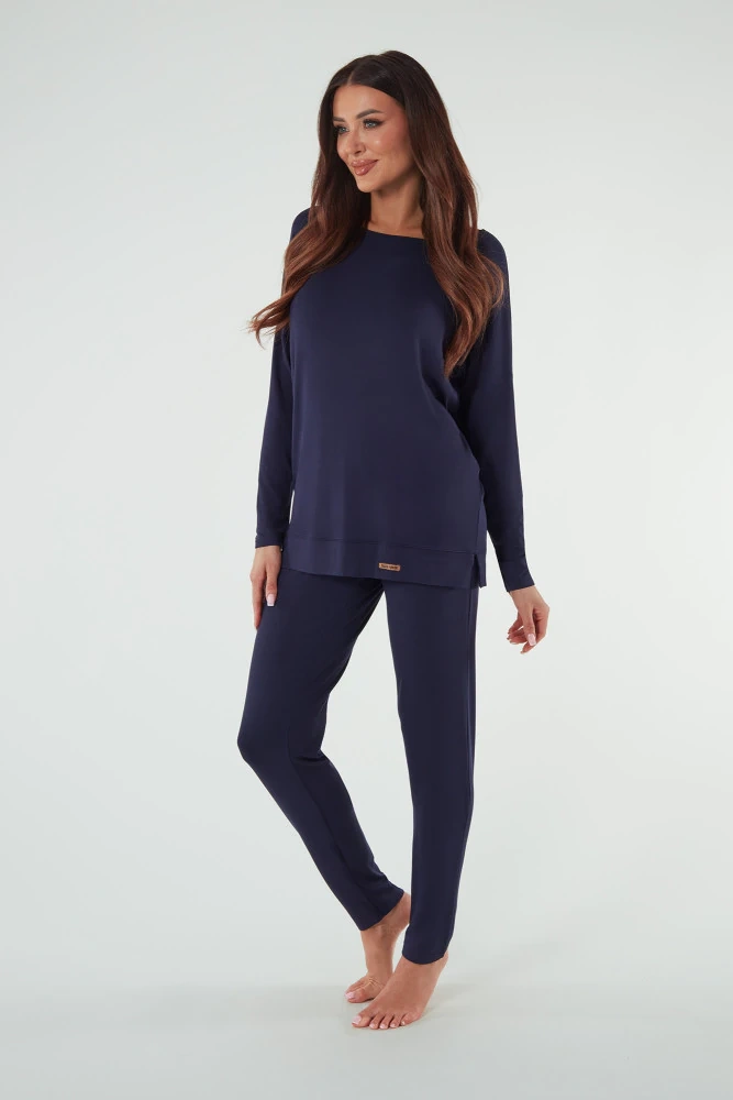 Akord Női hosszú ujjú szett, hosszú nadrág olasz divat - tengerészkék