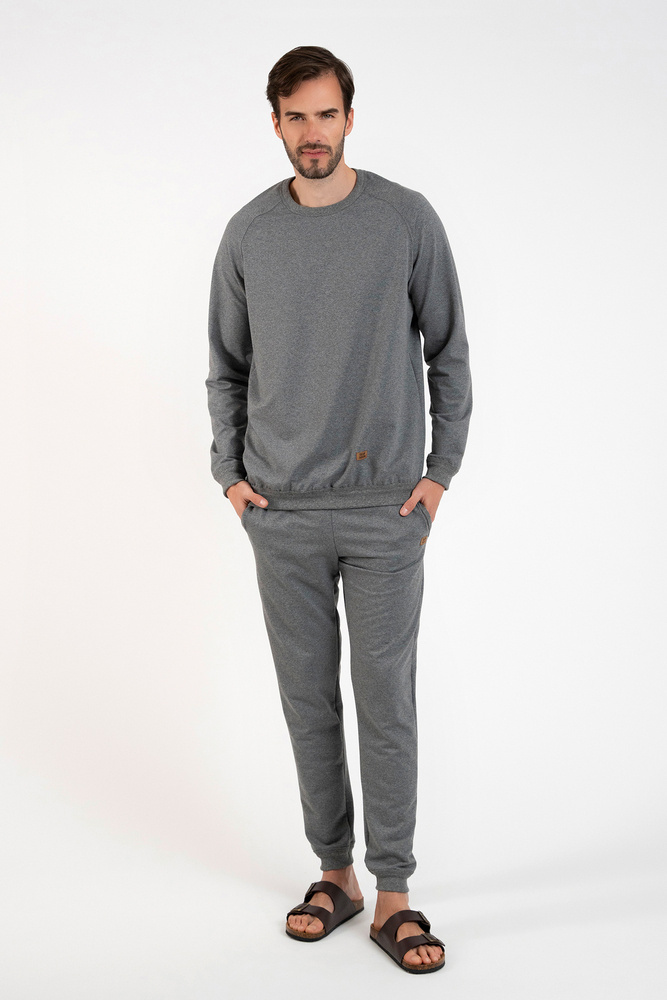 A kényelmes tréningruha tökéletes öltözék mind a sportos tevékenységekhez, mind az otthoni délutánokhoz. Ez a divatos férfi szett biztosan minden körülmények között működik. Reglan ujjak és egyenes szabás a stílusos megjelenésért és a mozgás szabadságáért. A férfi szett pulóvere teljesen egyszínű, zsebek nélkül, bordázott aljjal és ujjakkal, valamint a nadrágszárakkal, amelyeken zsebek találhatók. Diszkrét, divatos tapaszokkal is rendelkeznek. Ez az elegáns férfi tréningruha 95% pamutból és 5% elasztánból készült, így kellemes és puha tapintású. S és XXL méretben, fekete és szürke melange színekben kapható.