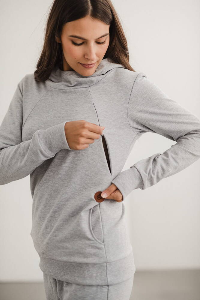 Milk Please bluza do karmienia Milk&Love z kapturem jasny szary melanż