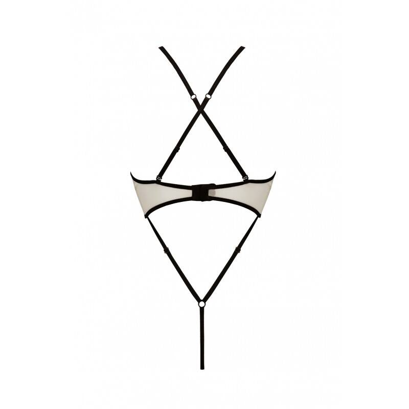 Fantasztikus kombinációja a fehér és a fekete részletek. Ez a szokatlan, erősen szabott bodysuit formálja a sziluettet, és rendkívül szexinek érzi magát. Eredeti díszített nyakkivágás és fedetlen hátrész. A nyitott lépcsőfok növeli a karaktert.