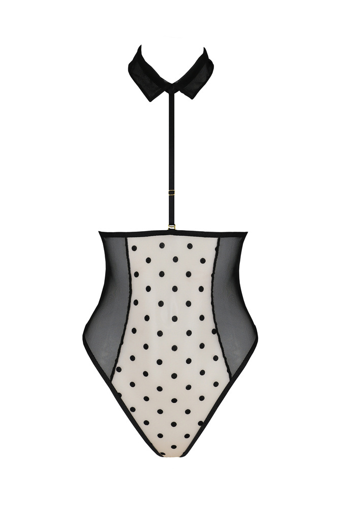Ez a nagyon szexi Trisha bodysuit a Passion márka javaslata, amely a testükkel és nőiességükkel tisztában lévő nőknek szól. Ideális minden alkalommal és minden alkalomra, amikor jó show-t akarsz csinálni. Bemutatott modell teljesen fedetlen mellek. Hátul fűzős kötés a kényelmes illeszkedésért. A szexi, levehető, gallér formájú nyakörv teszi még karakteresebbé az egész ruhát. A modell két színváltozatban kapható - fekete és bézs színben.