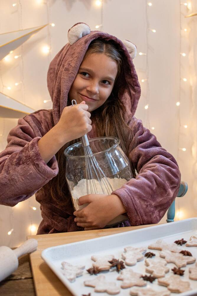 FOREX gyermek fürdőköpeny egyenes szabásban, kapucnival. Térdig érő, oldalsó zsebekkel, derékszíjjal és öv megkötővel. Minden egységes. Imádnivaló fülek a motorháztetőn. A fürdőköpeny tökéletesen alkalmazkodik a test alakjához, rendkívül puha és könnyű, puha kötött anyagból készült. Fürdés után öröm beleburkolózni!