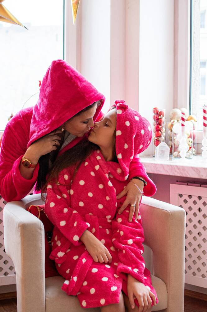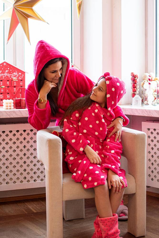 FOREX gyermek fürdőköpeny egyenes szabásban, kapucnival. Térdig érő, oldalsó zsebekkel, derékszíjjal és öv megkötővel. Minden borsóban. A fürdőköpeny tökéletesen alkalmazkodik a test alakjához, rendkívül puha és könnyű, puha kötött anyagból készült. Fürdés után öröm beleburkolózni!