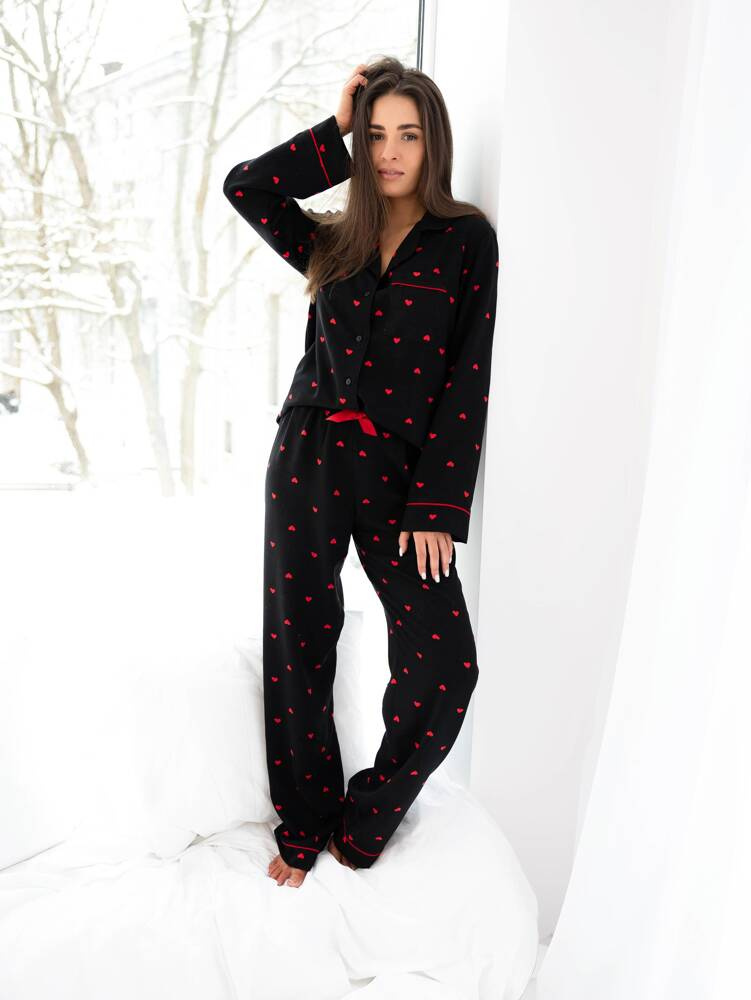 Női szív alakú pizsama kiváló minőségű viszkózból készült. Nyitott galléros blúz.