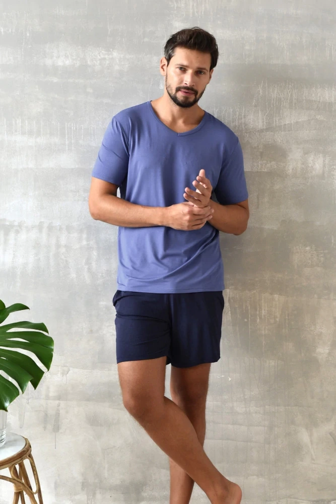 Dallas Férfi rövid ujjú pizsama, rövidnadrág Italian Fashion- kék