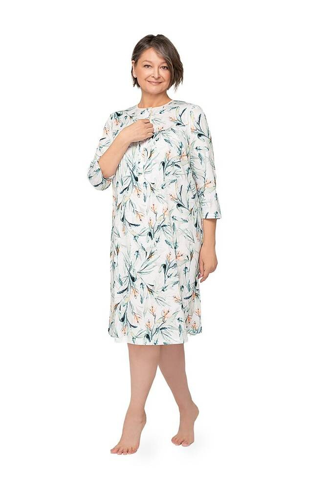 Damska rozpinana koszula nocna z  rękawem  3/4 to doskonała propozycja zarówno na lato, jak i na chłodniejsze noce. Przyjemna dla skóry 100% bawełna zapewni odpowiedni komfort termiczny, a delikatny, kwiatowy motyw przypadnie do gustu każdej kobiecie. Damska koszula nocna jest rozpinana na dekolcie, dzięki czemu idealnie nadaje się dla kobiet karmiących. Ta bawełniana damska koszula do spania to gwarancja wygody i swobody każdej nocy. Damska koszula nocna dostępna jest w rozmiarach od M do XXXL