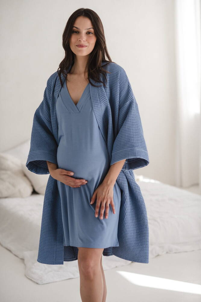 Moon bambusowa koszula nocna ciążowa i do karmienia Milk&Love ciemny błękit