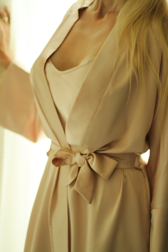 A szatén egyedi árnyalata rendkívül nemes és érzéki megjelenést kölcsönöz az egésznek.