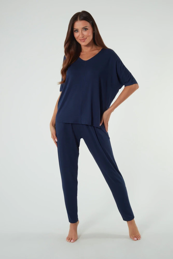 A viszkóz készlet minden évszakban nagyszerű. A viszkóz védi a bőrt a hidegtől, de ennek a szövetnek a szerkezete lélegző, így hatékonyan szabályozza a testhőmérsékletet. Ezenkívül a puha és nagyon kellemes tapintású viszkóz rendkívüli kényelmet biztosít alvás közben, amelyet a nadrágban lévő nem nyomó elasztikus anyag és a laza szabás még inkább biztosít. A készlet varázsát az eredeti és kissé kényes vágás adja. Ideális választás azok számára, akiknek a kényelem és az előkelőség mellett a kényelem is fontos.