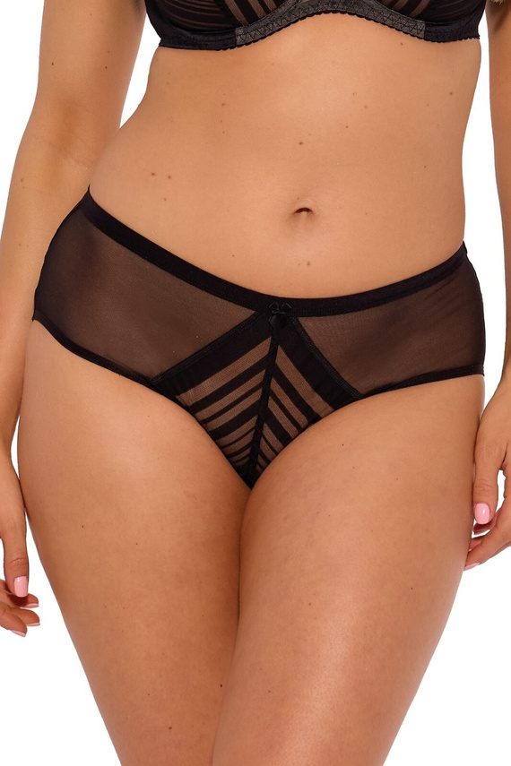 Lenyűgöző női bugyi teljes klasszikus szabásban. Átlátszó csíkos hálóból és sima mikroszálból készült