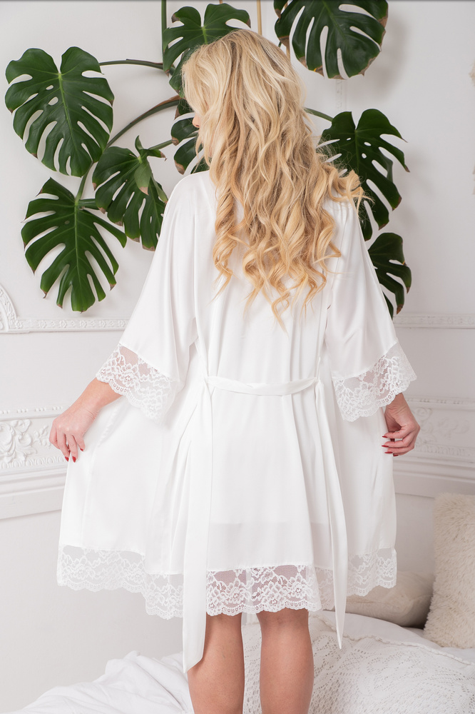 • Elegáns Sumi Kalimo köntös puha, fényes szaténból készült, elegáns köntös. Elegáns csipke az ujjakon és az alján, a derekán megkötővel - tökéletes a nap bármely szakában.