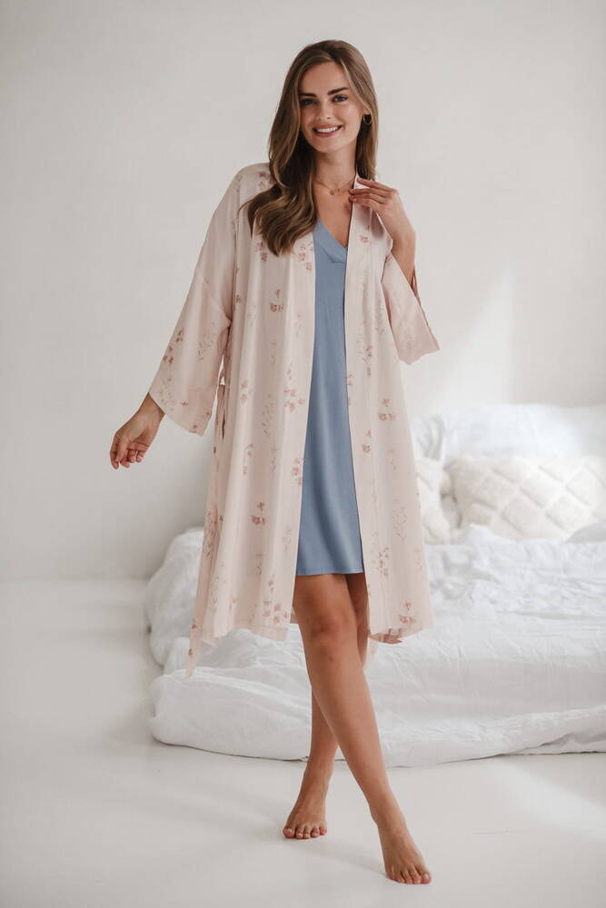 Flowers on pink szlafrok bambusowy ciążowy Milk&Love różowy