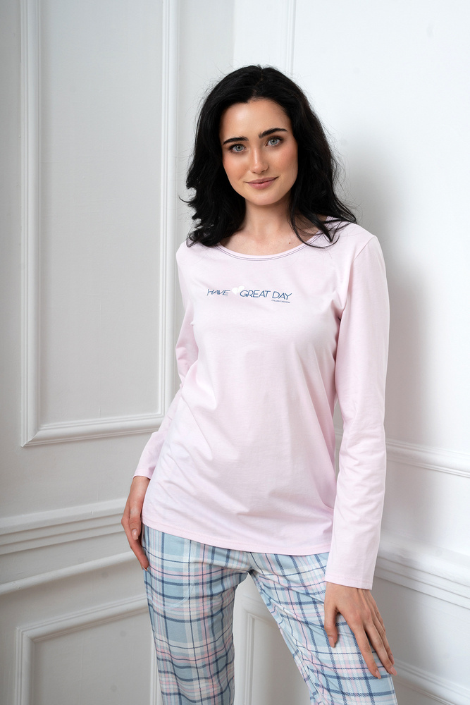 Glamour Női hosszú ujjú pizsama és hosszú nadrág Italian Fashion - rózsaszín/print