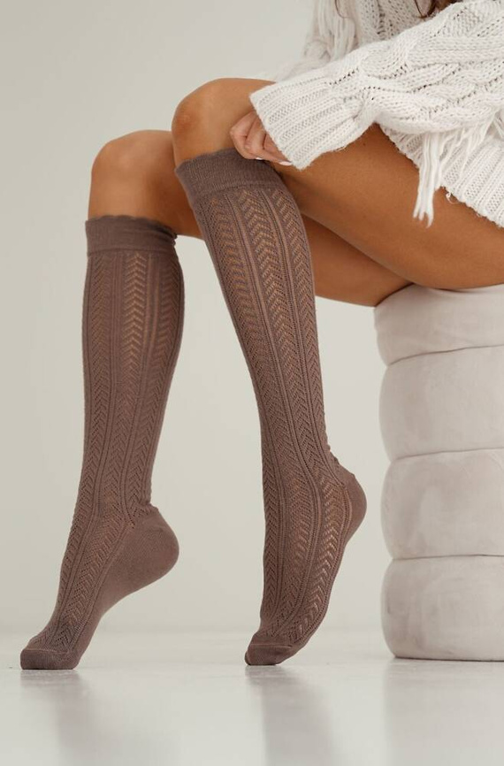 0330 Ażur Jodełka Podkolanówki damskie Milena - cappuccino