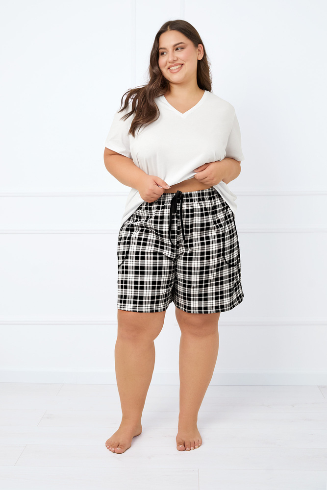 A Klara rövid alvónadrág egy olyan modell, ahol minden részletre odafigyeltek. Egyenes szabás, laza szárak és nagyméretű zsebek. Időtlen, klasszikus kockás minta vonzza a figyelmet. Van egy nem nyomó elasztikus derékpánt díszítő zsinórral.