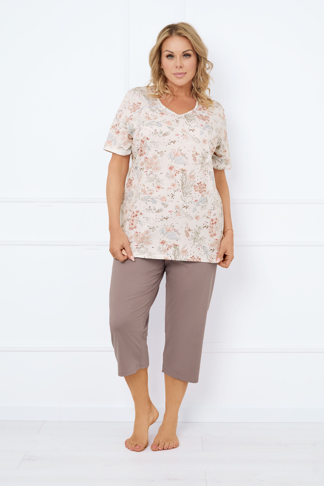 Ermida Női rövid ujjú pizsama, 3/4 nadrág Olasz divat - print/cappuccino