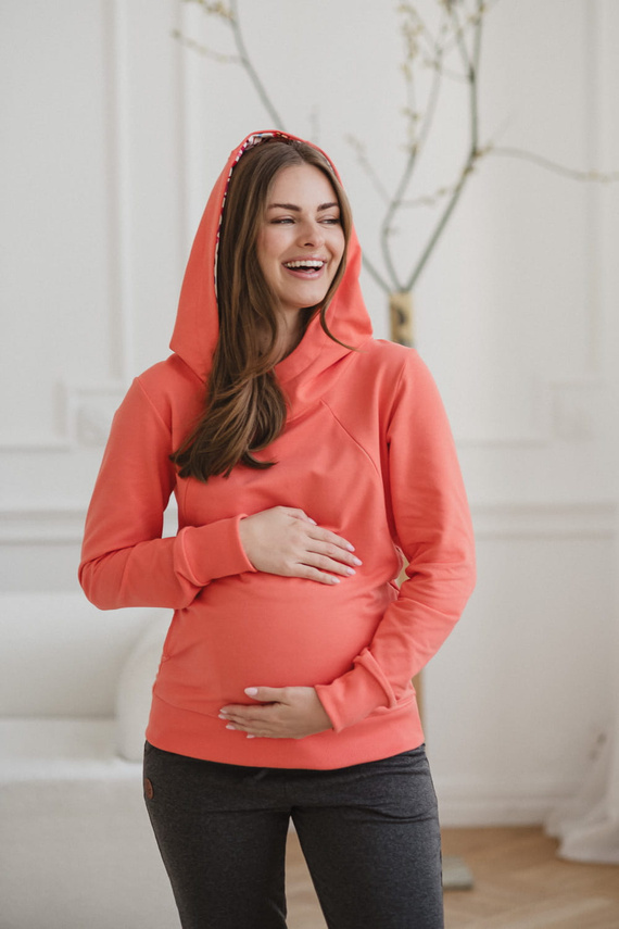 Milk Please bluza do karmienia Milk&Love z kapturem koralowy