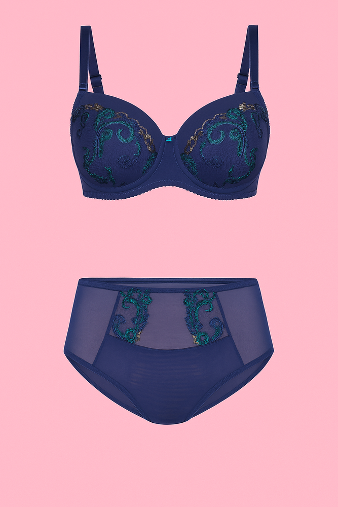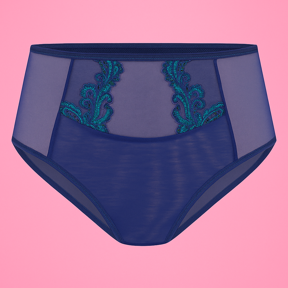 Női bugyi VF-474 - magasított, csipkés, komfort Vena tengerészkék-zöld