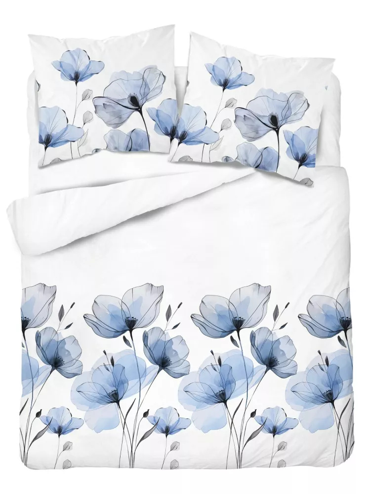 5496 A Pamut ágynemű fehér, akvarell kék virágokkal Naturalis- Detexpol