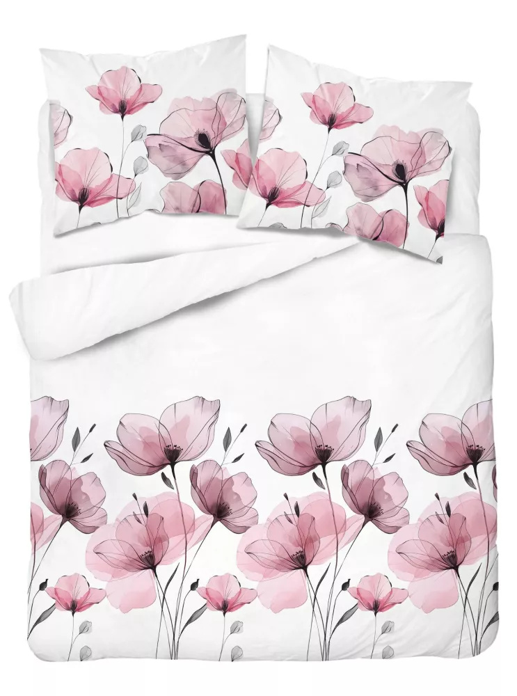 5496 B Pamut ágynemű fehér akvarell rózsaszín virágokkal Naturalis- Detexpol