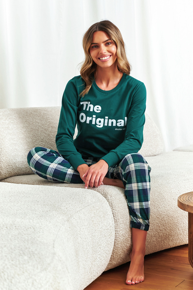 A Doctor Nap 7340 női pizsama egy kényelmes szett, amely minden évszakban tökéletes választás. A hosszú ujjú pamut blúz "The Original" nyomtatással és kockás nadrággal párosítva klasszikus, mégis modern megjelenést biztosít. Fontos - a 7340-es modell kiegészíthető az egész család pizsamájaként: anya, apa és a baba megfelelő szettben aludhat! A lengyel gyártás a magas minőség és a gondos kivitelezés garanciája.