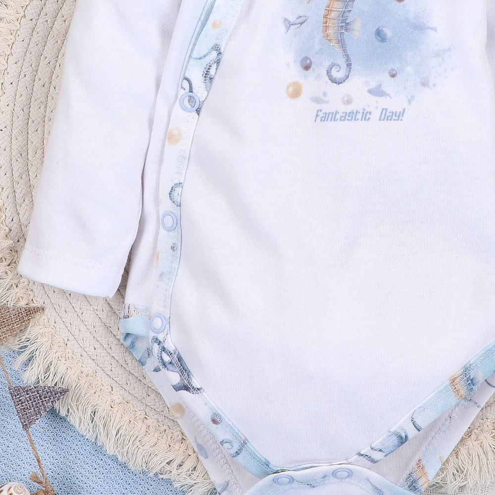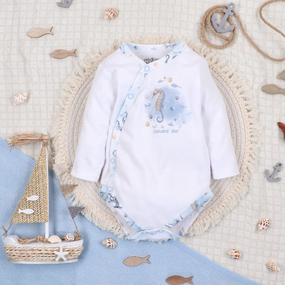 • SEA OF JOY Nini borítékos bodysuit - organikus pamut, gyengéd a bőrhöz, kényelmes rögzítés nyomógombokkal.