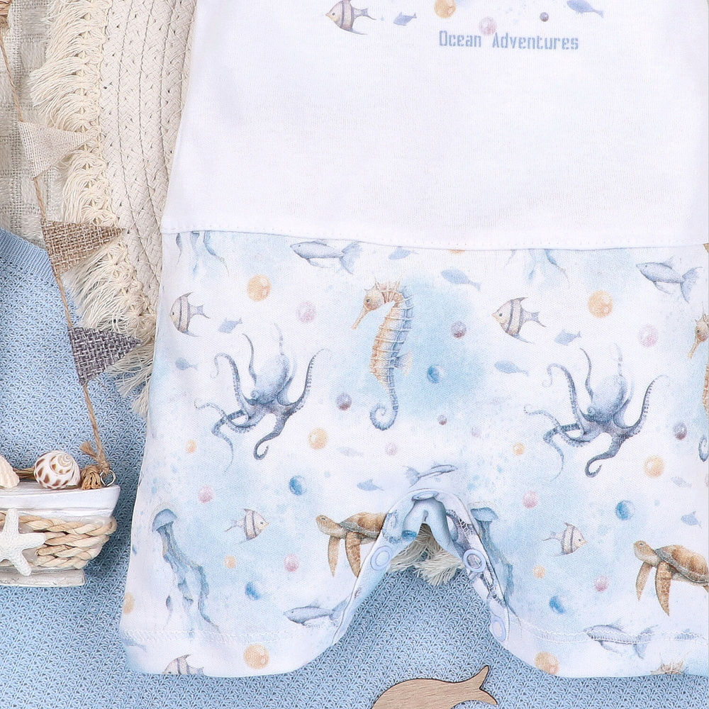 - Sea Of Joy Nini Rampers - 100% organikus pamut, könnyű, nyomógombos, kényelmes a meleg napokon.