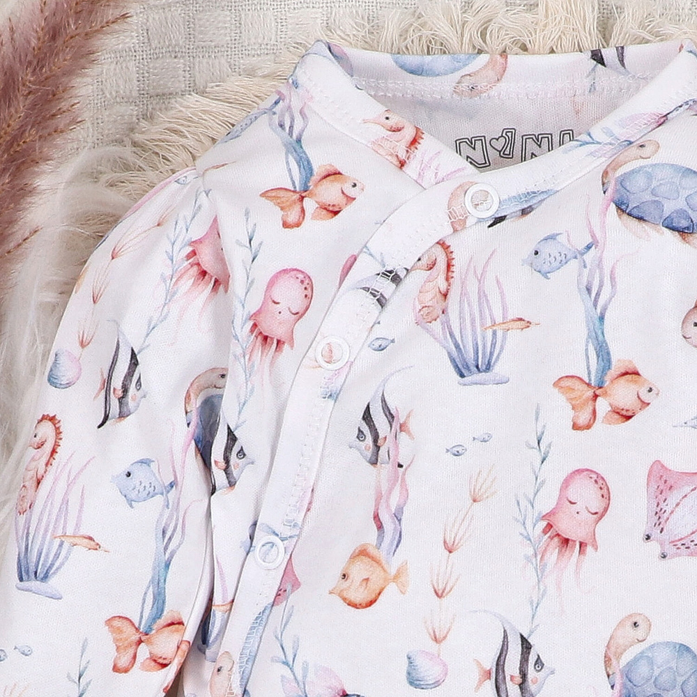 - Nini bodysuit Underwater World - 100% organikus pamut, borítékolt szabás, kényelmes nyomógombok.