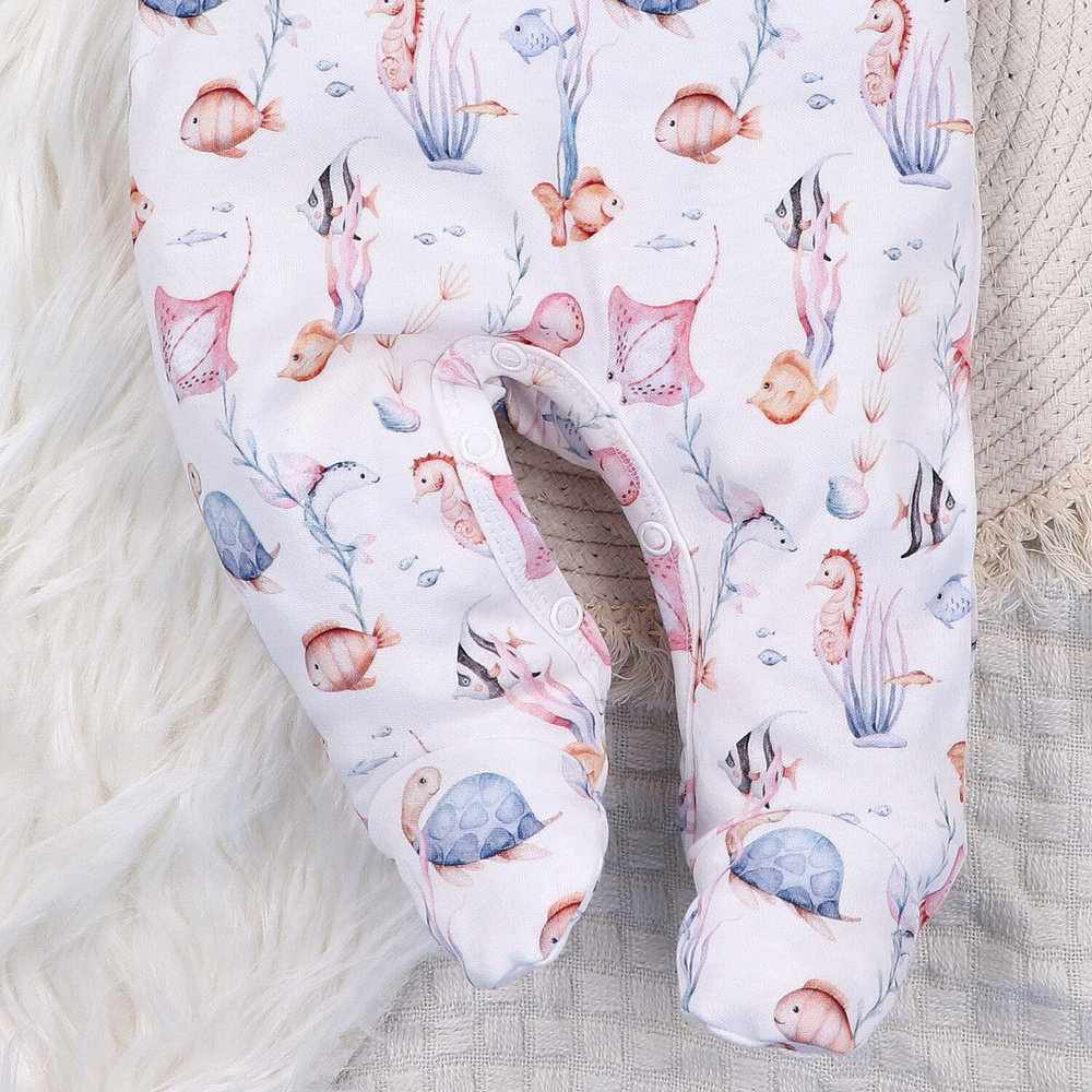 ABN-5480 Víz alatti világ Nini baba hálóruha - organikus pamut, zárt lábakkal