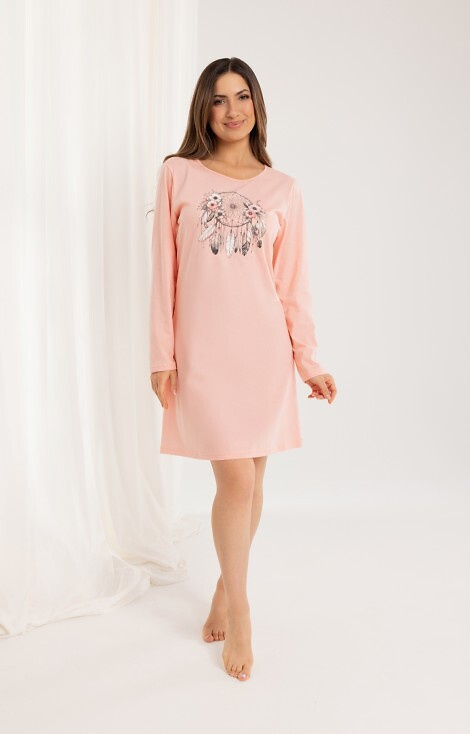 - Regina 162 pamut hálóing: hosszú ujjú, félköríves nyakkivágás, elöl nyomtatott mintás. Hossz térd előtt. 100% pamut.