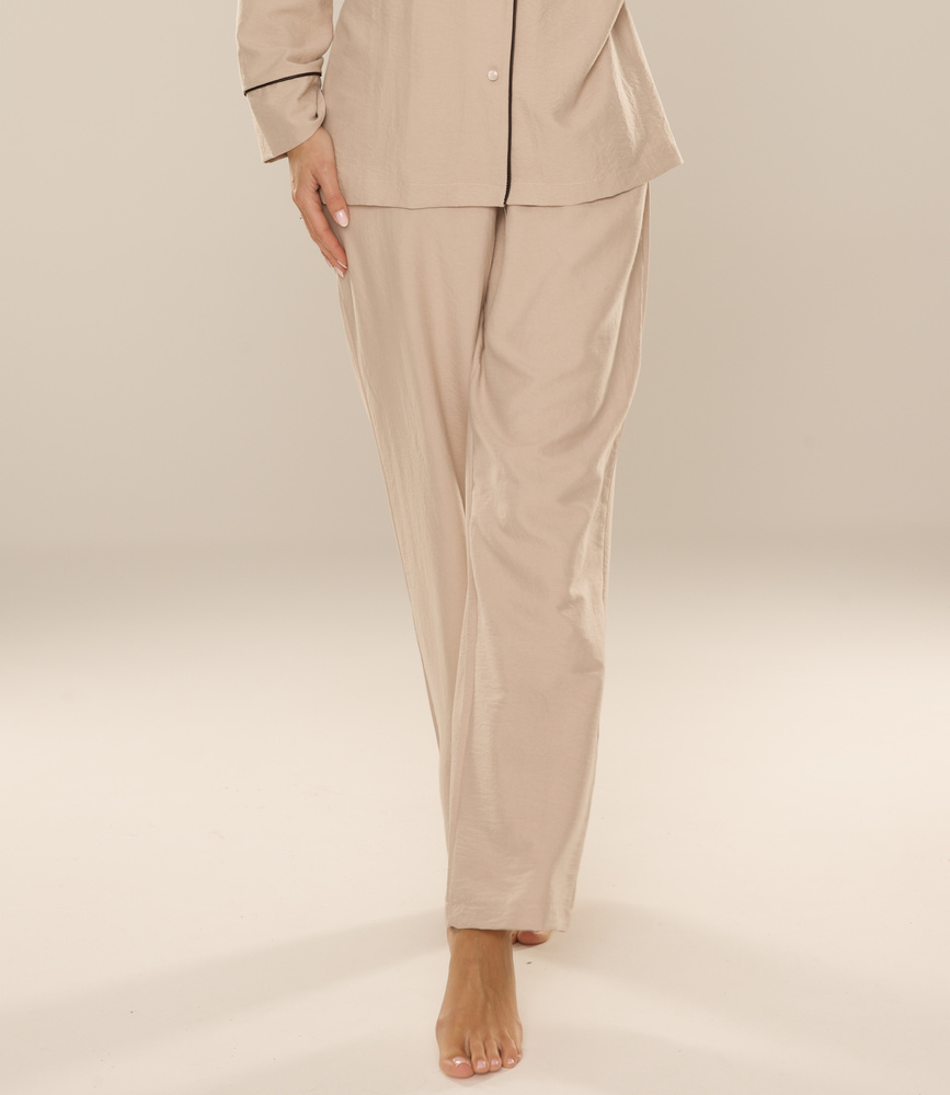 Maeve 875 De Lafense női pizsamanadrág - hosszú, egyszínű, zsebekkel - homokszínű