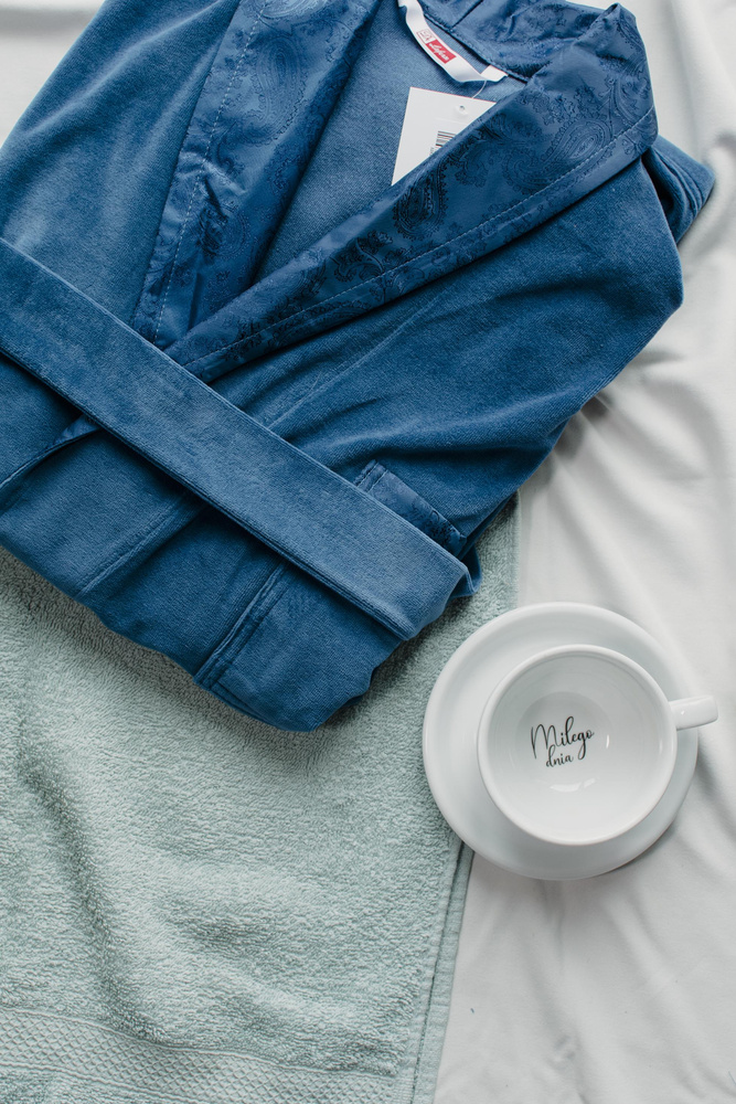 - Exkluzív férfi fürdőköpeny puha bársonyból. Noble 866 - tökéletes a hűvös reggelekhez és a stílusos pihenéshez.