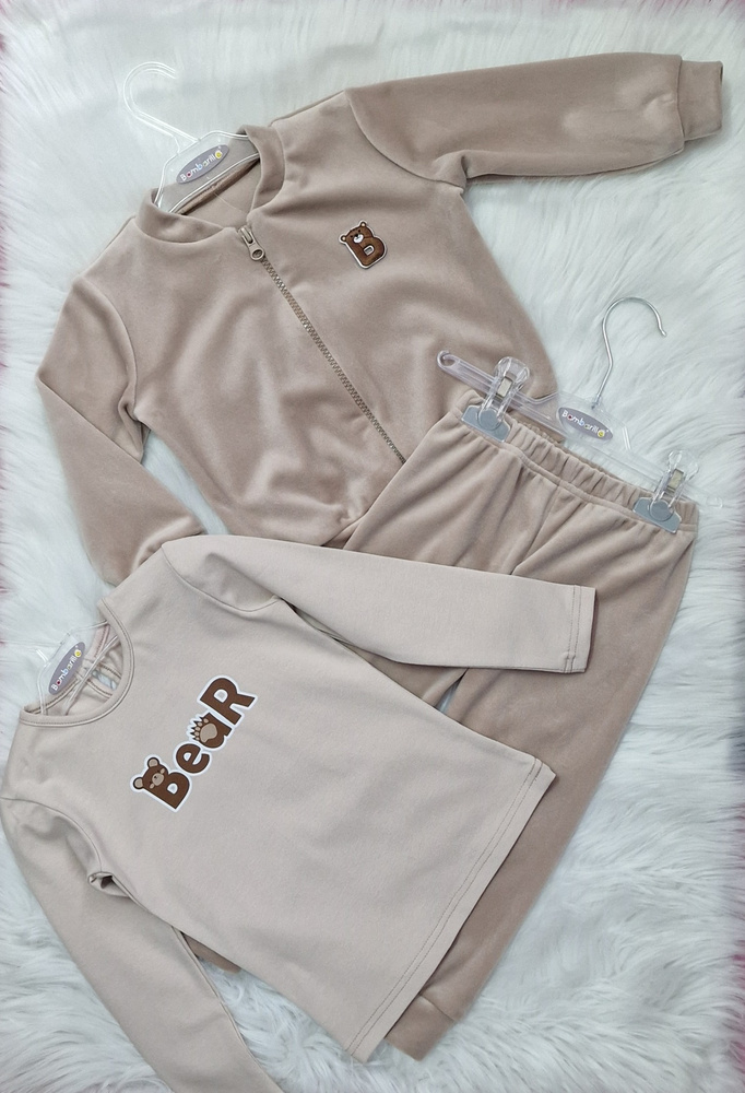 A Bear modell divatos, visszafogott színekben kapható: bézs és füstös rózsaszín. Ez egy olyan tréningruha, amely nemcsak jól néz ki, hanem könnyen mosható és gyorsan szárad - tökéletes a mindennapokra, az óvodába, a sétához vagy a ruhatár részeként.