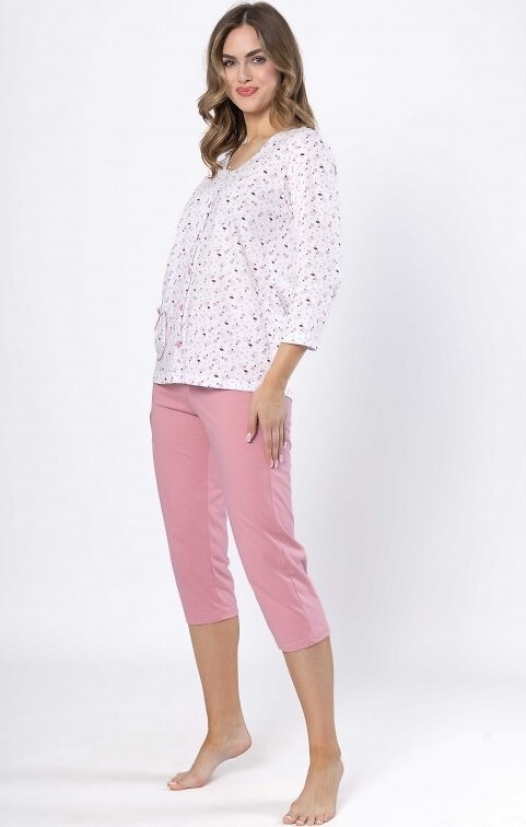 Női pizsama Dobrusia 1636 - rózsaszín pamut, 3/4-es ujjú, gombos, gombos