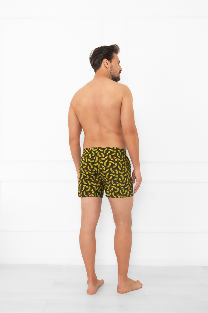 • Kényelmes férfi laza szabású boxeralsó játékos uborkamintával. Ideális azok számára, akik értékelik a kényelmet és egy kis humort a mindennapi stílusban.100% pamut
