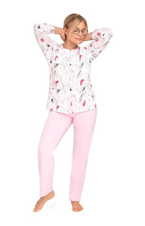 202 Maria III Női pizsama Martel 31 rózsaszín - pamut, kigombolt, hosszú ujjú, hosszú ujjú